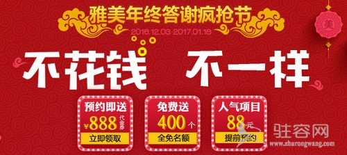 雅美年终答谢不仅准备了大量红包,礼品,奖品。而且人气项目低至88元,还有400个热门项目全免费送。